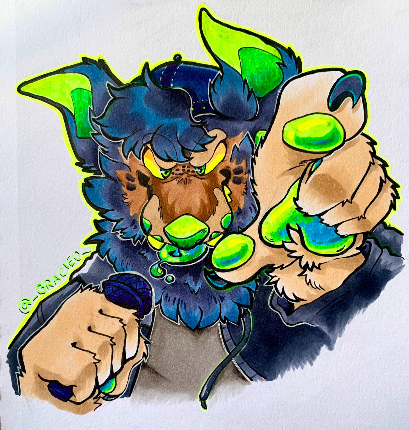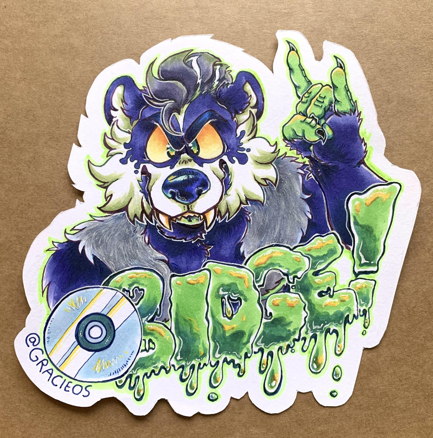 Fully colored lines, fully rendered with Copic markers and acrylic paint markers. About 6”-7”, final product hand cut and mailed.